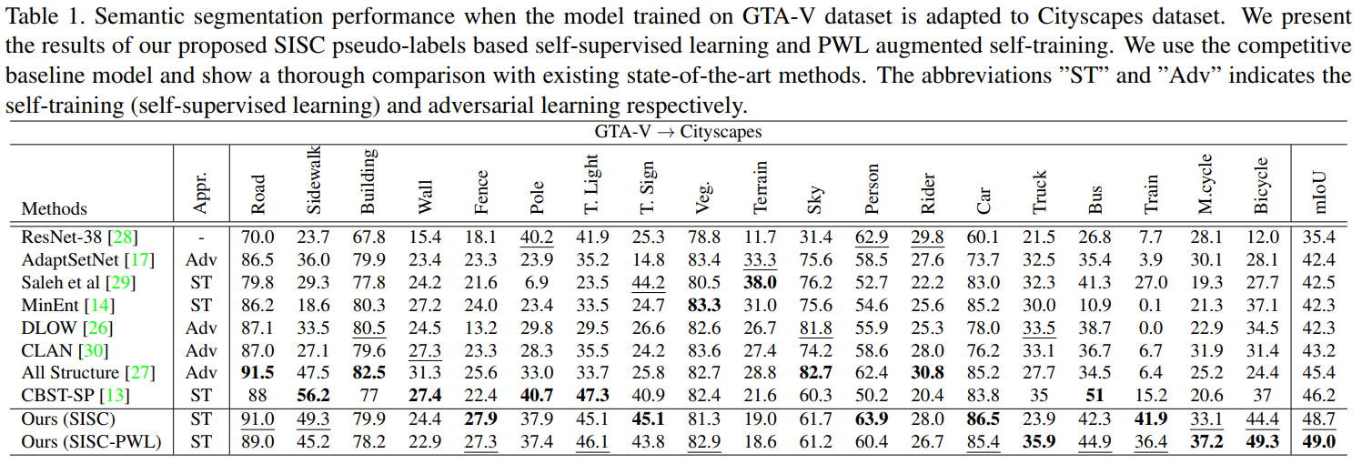 Leaderboard( GitHub: Leaderboard: Domain Adaptation for Semantic Segmentation)